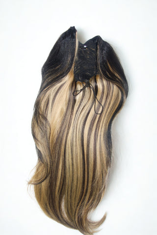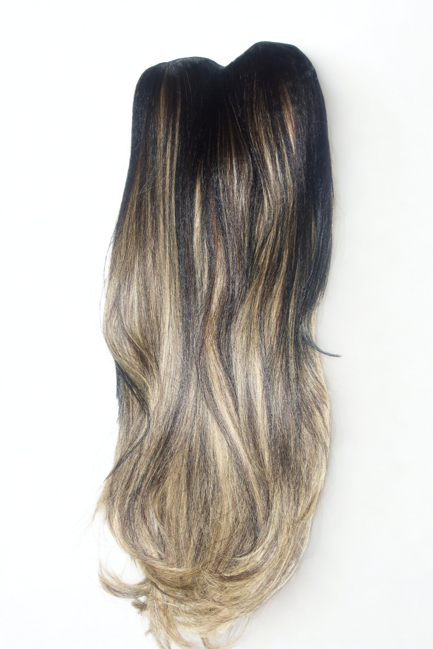 A dimensional, high-density V-part unit made with premium human hair, designed for versatile styling and rewear. This unit features bold, high-contrast streaks of honey, champagne, and ash-gold blonde - offering a salon-level highlight effect without the bleach.